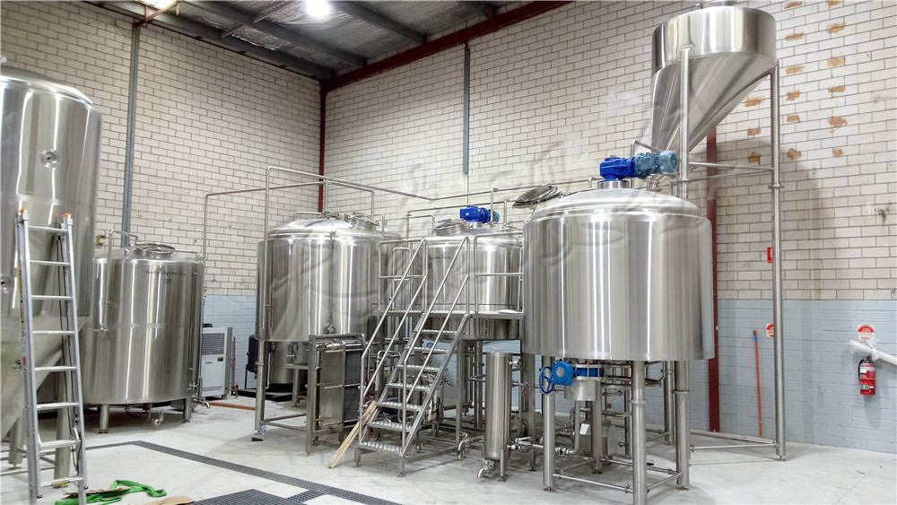 標(biāo)準(zhǔn)組成 2000L糖化罐+2000L過(guò)濾槽+2000L煮沸罐+2000L旋沉槽+4000L熱水罐+304不銹鋼輸送管道+全不銹鋼平臺(tái)+配套304不銹鋼氣動(dòng)蝶閥和管件+酒花過(guò)濾器+20㎡板式換熱器+配套儀表儀器